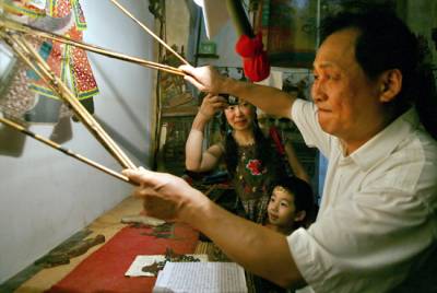 > 云梦皮影吸引暑期中的孩子