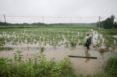 连日来仙桃市连将暴雨,平均雨量达189.9毫米。尤其是10日19时至11日,强降雨来势猛、强度大、时间长、危害大,使农田受灾严重。灾情发生后,仙桃市立即做出紧急部署,各地各部门迅速行动起来,奋力排涝抗灾。图为沙嘴办事处余积村一片被淹的棉花地。吴三红摄