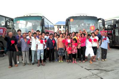 7月11日,南水北调中线工程核心水源区的湖北省郧县第7批安阳镇居峪村,槐树村,陈营村,3个村4个组131户574名移民在大雨中经600公里长途旅行安全抵达仙桃市,并在杨林尾镇举行了隆重的郧县移民进住移民新村的欢迎仪式,安置地包保工作队帮助移民卸车搬家,这是郧县继试点移民大规模移民搬迁中的第二批,现已累计有4478名移民搬迁到安置地生活.图为8号客运的陈营村7户28位移民在高速公路武当山服务区休息时照集体合影时的情景.周家山杨文华摄湖北省郧县城建监察大队电话13872840078邮编4425000