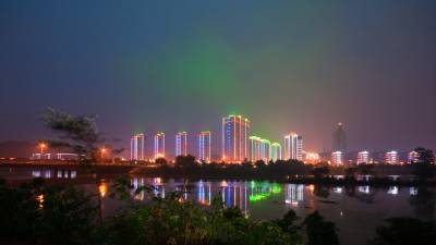 7月10日雨后,孝感新城区华灯初上。近年来孝感积极融入8+1城市圈,城市建设日新月异。