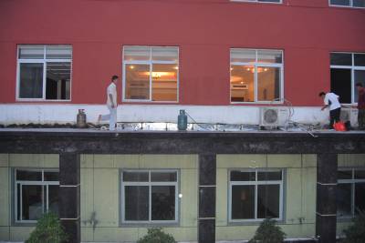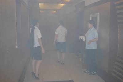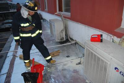 图文:防水工违章操作酿生空调火灾12日19时35分,郧西县城郧西宾馆三楼一包厢内冒出浓烟,情况不明。该县消防大队接到报警后,立即出动2台消防车10名战斗员赶赴现场。官兵们立即组织宾馆保安利用干粉灭火器一起进行扑救,火势很快就被扑灭,为了防止复燃,消防官兵对现场进行了彻底的检查,对包间进行自然通风排烟处理,在确定无任何火灾隐患后,方撤离现场。据了解,该起火灾是因为防水工人们利用液化气火焰对沥青防水卷材进行烘烤,由于温度过高引燃空调排气管所致。(本报视界网徐雁初张振摄)