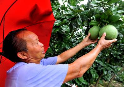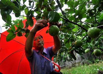 13日,宣恩县高罗乡埃山村”贡水白柚专业合作社”的社员们冒着强降雨在田间为柚苗除草。社员的激情来源于近些年来贡水白柚带给他们可观的经济效益。”贡水白柚”是宣恩县农业特产部门在上世纪90年代选育的地方良种,曾于1998年和1999年连续两年参加全国柚类鉴评会获得金奖。仅有一株”母树”的”贡水白柚”以过近20年的经营,目前该县已在适宜种植区域发展”贡水白柚”10万亩,亩产值视种植、管理水平可达4000-10000万元,白柚产业已成为当地农民致富的主导产业。本报视界网宋文摄