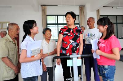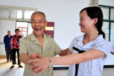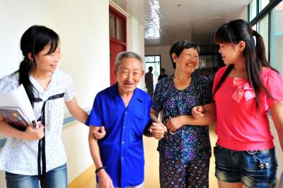 2010年暑假,湖北省武汉大学社会学教学研究基地在宜昌市夷陵区成立,设立了夷陵区民政局、夷陵区社会福利院两个实践教学点。 武汉大学社会学系2007级社会工作专业学生吴美玲和付丽丽作为该校参与社会系教学研究基地实践的25名大学生之一,今年暑假被分派到夷陵区社会福利院进行为期一个月的社会实践活动。 在福利院,吴美玲和付丽丽与福利院老人一起谈心交流、讲故事、健身、看书、聊天:”爷爷、奶奶是什么时候住进福利院的”、”为什么选择福利院度晚年”、”这里的条件怎么样”、”福利院的集体生活习惯不习惯”……她俩一声声贴心窝的问候,让老人们意犹未尽、开心之极。 两位大学生告诉笔者,他们学的就是社会工作专业,利用暑假在福利院做义工,主要和老人们进行心理沟通,这样可以将所学到的知识服务社会,同时也想通过调查,对福利院等社会慈善机构建设发展有所建议。本报视界网张国荣摄