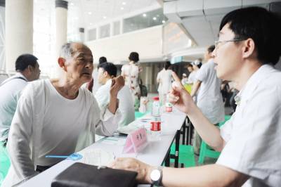 义诊服务进社区昨日,潜江市张大爷脑部有些不舒服,向省脑科中心神经内科许康主任进行咨询。当日,潜江市医学会邀请首都医科大学、省新华医院、省脑科中心、国家化学中毒救治湖北基地等5名专家、教授深入潜江的社区开展义诊服务,热情接待群众咨询,共为200余位市民进行了义诊。本报视界网吴燕军摄