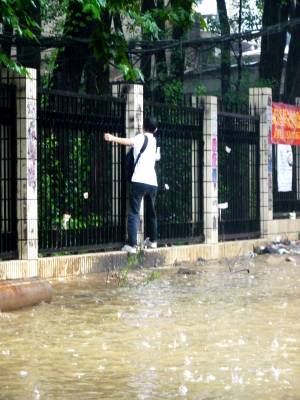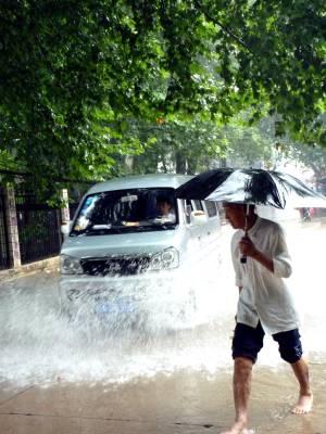 7月13日,暴雨天气继续袭击武汉,部分城区主干道多处积水,交通阻塞,给市民出行造成不便。据了解,7月8日至今,武汉市普降大到暴雨,部分地区降雨量达220毫米以上,其中蔡甸区消泗乡达323mm。据初步统计,截止7月12日,强降雨造成全市6个远城区和部分中心城区不同程度受灾,涉及36个乡镇街,受灾人口278622人,紧急转移受灾群众2563人,倒塌房屋617间,损坏房屋1574间,农作物受灾面积608895亩,直接经济损失1.32亿元。