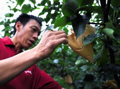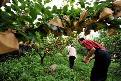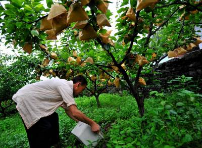 14日,宣恩县椒园镇黄坪村村民姚元祥管理已经过二次套袋的有机黄金梨园。按照有机农产品生产规程、经过两次套袋后的黄金梨标准果,去年市场价达10元/公斤。近年来,地处恩施州腹地的宣恩县致力改变传统农业模式,瞄准有机农产品市场,在农业部、省农业厅、华中农业大学等的支持下,打造”全国知名有机农产品基地”,茶叶、利、白柚等近10万亩农产品基地相继通过欧盟有机食品认证或正处在转换期。本报视界网宋文摄