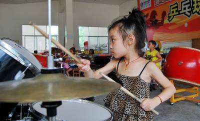 山里娃进军CCTV”辉煌中国”7月14日,在宣恩县青少年活动中心的教室里,14名孩子在来自湖南省打击乐会副会长李老师带领下排练着节目,为8月初举行的”辉煌中国”第二届全国艺术精英电视盛典做准备。据了解,这个节目由14个孩子共同完成。(最小的只有4岁半,最大的孩子也只有12岁。)这个节目中容纳了京剧《说唱脸谱》、戏曲《上山打虎》和进行曲《黄河大合唱》三首歌曲,并将9个西方架子鼓和8个中国的苗鼓充分结合起来共同组成的一个节目。这支队伍已在层层的选拔中脱颖而出,他们正朝着”辉煌中国”第二届全国艺术精英电视盛典发起最后的冲刺。