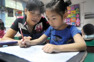 不是亲妈胜亲妈14日,家住黄石市十五冶社区的留守儿童朱思傲在她的”爱心妈妈”陪同下到社区学习绘画。她今年刚上小学一年级,父亲在西安做服装生意,母亲在武汉服装企业做设计。学校放假了,年迈的祖母不能教她学习,父母在外地又没有时间管她。社区得知这一情况后,便联系”爱心妈妈”夏克芳照顾她。夏克芳今年44岁,下岗在家照顾母亲,儿子在武汉读大学,闲来无事便在社区报名做”爱心妈妈”。整个暑假期间,她不仅义务照顾朱思傲生活,还帮助朱思傲学习文化知识。朱思傲说夏克芳比她亲妈还好。黄石市黄石日报摄影部邱孝威摄电话:13807232603邮编:435002