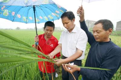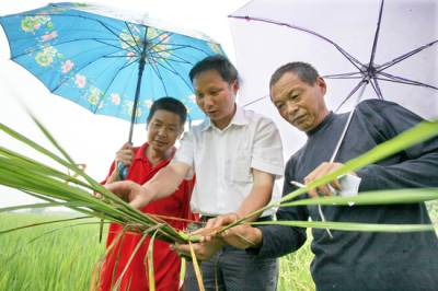 防治虫害保丰收连日普降大到暴雨,不利气候因素影响水稻虫害呈大发生态势。7月13日,云梦县沙河乡农机站站长田银元冒雨来到该乡石羊村11组指导农民防治二代二化螟和纹枯病等虫害疫情,提醒农户正确选配农药,抢在晴天集中施药防治,谨防稻飞虱、稻纵卷叶螟等病虫害的大暴发。目前正是水稻幼穗分化的关键时期,也是防治病虫害的关键时段,防治不力将严重影响水稻产量。签约摄影师晏美华摄