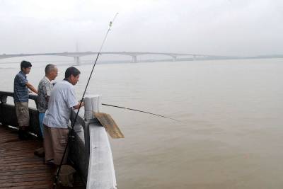 长江涨水市民悠闲14日,长江黄石段水位已上涨到23.05米,超过设防水位0.25米。但由于我市长江堤段各种防汛设施牢固,防汛措施到位,市民很放心,不惧怕长江洪水泛滥。图一:市民在新建的江滩公园散步休闲。图二:市民在新建的江滩公园垂钓。图三:市民在新建的江滩公园戏水。黄石市黄石日报摄影部邱孝威摄