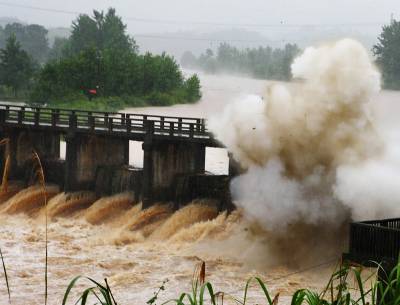 咸宁爆破小水电拦水坝泄洪