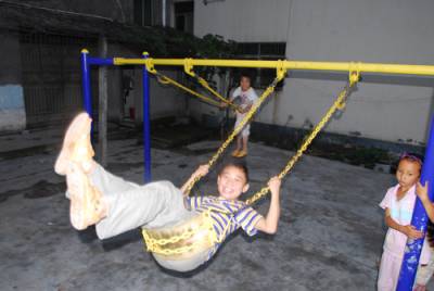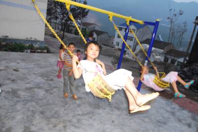 7月13日,家住秭归县水田坝乡上坝村的柳静郝明旺和伙伴们在新建的文化广场健身娱乐区内荡秋千。暑假期间,秭归县境内一批乡镇文化体育设施建设陆续投入使用,既为当地学生提供了休闲娱乐场所,又改善了环境卫生,美化了村容村貌,深受群众的欢迎。
