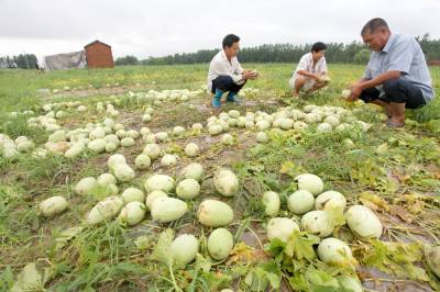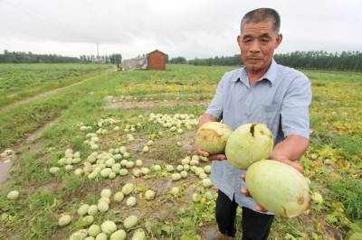 昨日,阳新县黄颡口镇三洲村的蔬菜基地里,几位瓜农正面对着烂在地里的香瓜发愁。由于连日来的强降雨,雨水几乎将该基地里种植所有作物全部淹没。来自嘉鱼的瓜农周同林告诉记者,他在该基地承包了100亩土地种植香瓜和西瓜,时下正值收获的季节,没想到一场大雨让刚刚成熟的瓜全部烂在了地里,这一季的损失超过10万元。三洲村党支部书记邓承贵表示,目前该村共有2000亩土地受灾,直接经济损失超过150万元。记者何戈摄