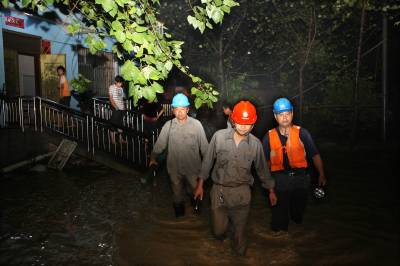 > 咸宁南川水库泄洪市区积水,供电员工紧急保电