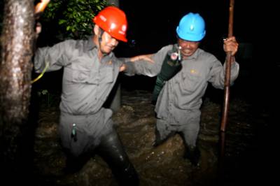 7月15日凌晨2点,咸宁供电公司员工在市郊熊家湾涉水巡查供电设施。14日傍晚,南川水库泄洪流量达60m3/s,加上当天的强降雨,导致咸宁市区及市郊部分地段积水。灾情发生后,市委、市政府立即组织抗洪抢险突击队、武警官兵和公安干警紧急转移安、置受灾群众,供电抢修突击队迅速出击,力保受灾区域电力的安全有序供应。