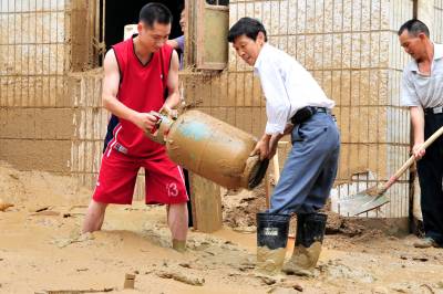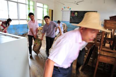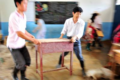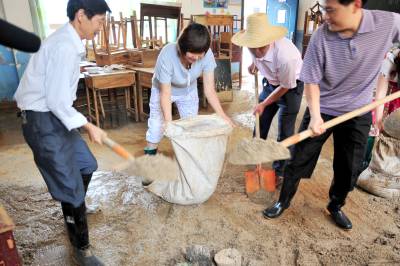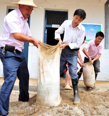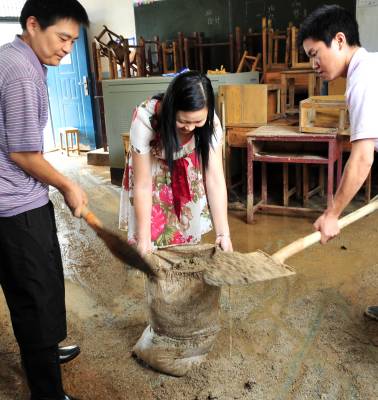 这是一支与时间赛跑的非专业挖掘队伍,没有专业的衣装、没有专业的挖掘器具……从2010年7月8日晚上开始,就一直在泥沙淤积的校园里勇战洪水灾害。他们就是由湖北省宜昌市夷陵区乐天溪镇三峡小学10多名教师组成的抗洪救灾救援队。 7月8日18时许,地处三峡工程坝区的宜昌市夷陵区乐天溪镇遭强暴雨袭击,引发泥石流,约5万方山田塌方。该镇三峡小学受灾最严重,学校围墙及保坎垮塌40多米,教学楼、教师宿舍一楼全部进水,泥沙最深处达3米,校内塑胶跑道几乎报废。因正值暑假,学校里只有老师,由于救援及时,未造成人员伤亡。 灾情发生后,当地干部群众奋力抢险,抗灾自救,驻三峡坝区武警部队紧急驰援,投入到抗洪抢险战斗中。”校园就是我们的家园!””我们熟悉情况,让我们去!”三峡小学的老师纷纷主动请战,第一时间投入到排洪清淤的救灾救援队伍之中。 连续的弯腰作业,高强度、高负荷的清淤工作,教师救援队员们的体力和心理都承受着巨大的考验。机械化器具进场之前,所有的清淤工作全靠人工进行。为了保证9月份学校顺利开学,该校所有的教职工加班加点排洪清淤。腰直不起来,就蹲着搬;衣服磨烂了,他们没有停下来;手上起了血泡,他们也没有停下来;脚趾划破了,他们还是没有停下来,他们一直坚守在救灾一线。 在这次抢险救灾工作中,三峡小学教师救援队最大限度地保证了师生人身和财产安全,确保了灾后重建顺利进行。10多名园丁用柔弱的肩膀、坚毅的双腿以及满怀的责任感将损失降到了最低,在现场指导抗洪救灾的上级领导和周围的群众无不感慨:”人民教师都是好样的,在这样的无情天灾面前表现出来的无私奉献精神令人感动,他们是最可爱的人!”本报视界网张国荣摄