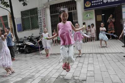 留守儿童快乐过暑假7月15日,孩子们参加丰富多彩的体育活动。暑期,宜昌市西陵区学院街办中书街社区”爱心小课桌”免费向辖区留守儿童和农民工子女开放,这里不仅有专人指导他们在作业上遇到的难题,还能参加多种文艺、体育活动,度过一个快乐而有意义的暑假。本报视界网黄翔摄