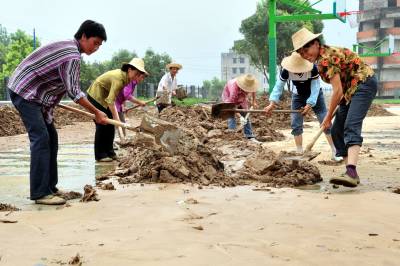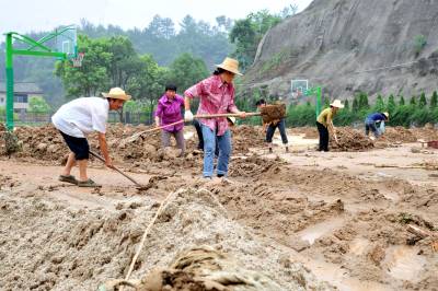 连日来,在湖北省宜昌市遭受洪涝灾害最为严重地区之一的夷陵区乐天溪镇三峡小学,当地村民纷纷来到学校开展灾后自救,加紧清理教室内外3米多高的泥沙和操场上0.5米厚的淤泥,确保秋季学期顺利开学。 7月8日-11日,宜昌市出现强降雨,致使东部平原积水内涝,西部山区山洪暴发,全市73.8万人受灾,农作物受灾面积46188公顷,因灾倒塌房屋1008户2672间,损坏房屋14059间,紧急转移安置人员22504人,因灾死亡1人,失踪1人,直接经济损失28857.4万元。 灾情发生后,当地政府启动自然灾害救助应急Ⅳ级响应,干群齐心协力抢险救灾,采取相应措施积极开展灾后自救,努力降低灾害损失。本报世界网张国荣摄