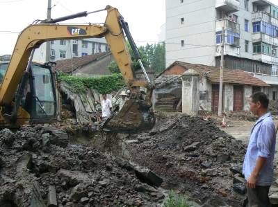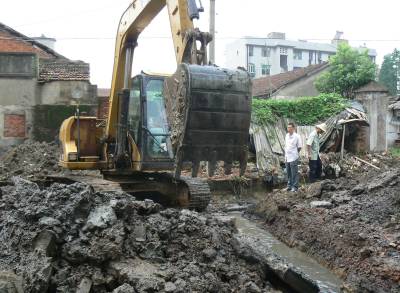 为了切实解决孝昌老城区环城路下水道堵塞污水横流、臭气熏天的现状,花园镇政府多方筹措资金150万元,重新修建环城路下水道,彻底解决因下水道”肠梗阻”而造成的环境污染。图为7月16日上午,环城路小水道正在开挖重建。通讯员宋俊初刘民贤石秀摄