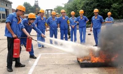 人人都是”消防员”16日,中国十五冶金建设公司汽车修理厂两名新员工正在进行灭火演习。据了解,该厂有40多名修理工,他们每天都工作在修理的汽车汽油、柴油中,稍不注意就会发生火灾。为此,厂里要求每名员工都会使用消防器材,对新来的员工一律培训消防知识再上岗。1972年建厂以来至今未出过火灾事故发生。邱孝威摄