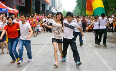 为迎接省运会的到来,昨日上午,荆门市东宝区泉口街道浏河社区开展了"迎省运促和谐"首届居民趣味运动会。袋鼠跳、双人绑腿跑、踩气球、拔河等趣味比赛项目吸引了众多市民的参与,社区舞蹈队还现场进行了休闲伦巴、健身球及柔力球等群众体育项目表演。郭立严昌梅摄