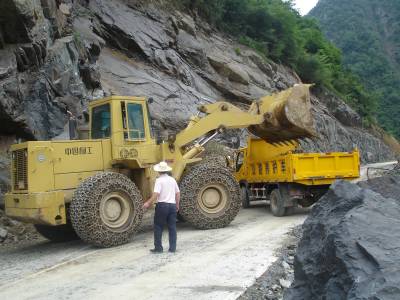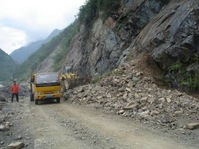 > 五峰养路工人抢修水毁道路