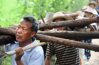 全力以赴固大堤16日,在长江支流蕲河蕲春县漕河镇关河村大堤500米长的崩岸现场,300多名干群挑土、打桩加固大堤。有效扼制住大堤险情进一步发展。图1:干群赶赴抢险现场。图2:取土护堤。图3;打桩固堤。图4:全力以赴固大堤。(记者曲河摄)
