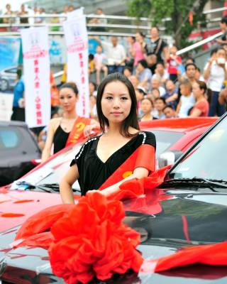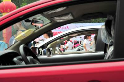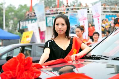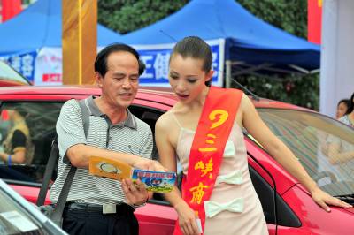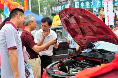 2010年7月17日,湖北省宜昌市汽车经销商联手将汽车展会开进夷陵区平湖广场,30多台主流时尚汽车品牌亮相展台,工作人员为打算买车的社区居民提供并介绍最详细的新车资料,让市民在家门口就可一圆购车梦。本报视界网张国荣摄