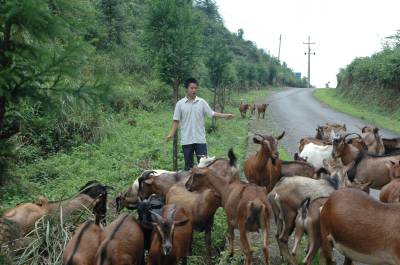 7月17日,来凤县大河镇杉木塘村四组村民张孝州在山坡上赶着山羊回家(图一),两只走在前面的头羊好奇地望着笔者的镜头(图二)。去年在外打工的张孝州返乡后看好在山上放养山羊的市场前景,在大河镇财经所的帮助下办起特色养殖专业合作社,购入优良山羊品种繁养,目前已有山羊近100只。他抱起一只小羊羔(图三)告诉笔者,按目前山羊市场价格每公年16元算,他这些山羊可以卖到2万多元,由于在山上放养节约了养殖成本,比养猪划算。通讯员张友胜摄445706来凤县大河镇财经所张友胜13477289416采访手记:近年来,不少返乡农民工在外打工赚回不少血汗钱,但他们仍不忘在家乡干一番事业,一些懂技术、有文化、会经营的新型农民依靠党的富民政策成了当地致富带头人。