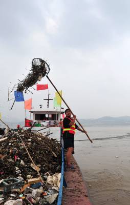 由于长江沿线连日持续降雨,已进入主汛期的长江三峡水库入库流量大增,水上漂浮物随之增多。位于三峡库区的湖北省秭归县环保局及时组织12艘清漂船和60多名工人,加大清漂力度,确保船舶航行安全和库区水质洁净。