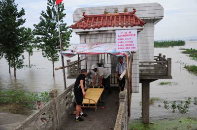 当日12时,长江九江水文站测报水位达到20.61米,小池口站17日14时水位达到20.50米,黄梅县长江水位已达警戒水位。黄梅县防汛抗旱指挥部迅速下达《关于全面加强长江干堤防守的1号命令》,要求全县长江干堤防区各级指挥长全面加强巡堤查险处险和各涵闸站的防守工作,确保长江干堤安全。王政摄