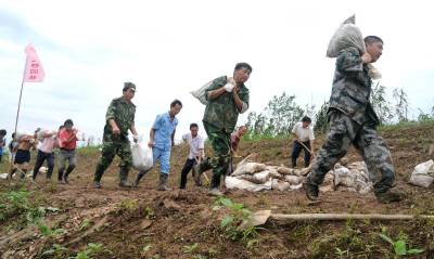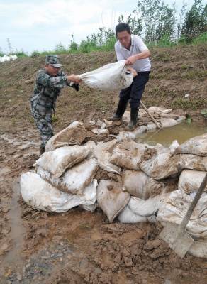黄石市河口镇人民保大堤17日,黄石市河口镇干部、青年突击队在往该镇龙泉湖大堤运送沙袋。龙泉湖与大冶湖相连,目前水位已达20.3米,龙泉湖大堤全长3000米,平均堤高21.3米。龙泉湖垦区是河口万亩现代农业示范园中心区域,居住着几千户人家,龙泉湖大堤是垦区内数农民及千万元财产的保护屏障,也是该镇防汛工作的重点。16日大堤在高水位的数日浸泡下,已出现几十处管涌,随时都有塌方或溃口的危险。为尽一切保护人民生命财产安全,镇政府不惜一切代价,动员全部力量做好防汛工作。图一:运送沙袋。图二:湖水接近大堤。图三:沙袋筑管涌。图四:吃在堤上。黄石市黄石日报摄影部邱孝威摄电话13807232603邮编435002