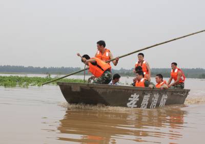 洪水中,孝昌消防战士及警民7小时倾情大营救