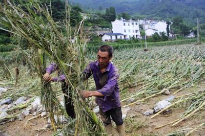 上下齐心抗洪减灾7月18日,宜昌市夷陵区雾渡河镇清江坪村9组村民正在田地里抢救农作物。遭遇罕见洪水袭击后的清江坪村受灾情况较重,防洪堤被冲毁5330米,全村1075亩农作物受灾,其中593亩核桃、茶叶、柑橘以及玉米绝收。受灾人口3100人。目前,宜昌市受灾地区广大干部群众没有消极等待,而是奋力抗灾,力争把灾害损失降到最低程度。本报视界网黄翔摄