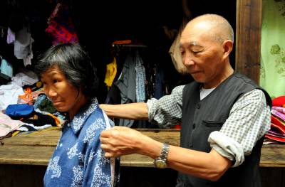 19日,宣恩县椒园镇庆阳老街一个陈旧裁缝铺的木制柜台前,老裁缝曹师傅正在给顾客量尺寸。上世纪六七十年代以来,裁缝作为一门手艺活曾盛行一时,随着成衣市场的繁荣及发展,导致裁缝铺生意的清淡。而在庆阳老街,手工精细、款式灵活自由、讲究量体裁衣的裁缝铺生意一直红火。(本报视界网田丹)