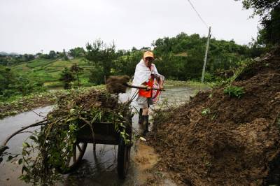 > 竹山村民抢修水毁路