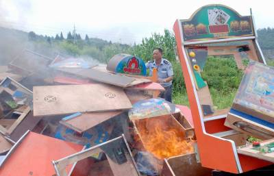 咸丰县集中销毁227台赌博游戏机(咸丰公安:金国民瞿素萍15335812887)7月17日,湖北省咸丰县公安局对今年以来在多次整治行动中收缴的227台老虎机、苹果机等各类赌博机进行了集中销毁,广大群众拍手称快。咸丰县公安局为净化社会风气,确保全县社会政治大局稳定,今年以来,始终坚持对各类违法犯罪活动的严厉打击态势,在全县组织开展了严厉打击赌博等违法犯罪活动的专项行动,重点排查整治了群众反映强烈的校园周边电子游戏室及娱乐服务场所的赌博违法犯罪行为,并取得了明显成效。通过这次集中销毁,表明了公安机关严厉打击抵制”黄赌毒”的决心,咸丰公安将不定时地开展排查整治,净化社会风气,达到震慑违法犯罪,实现全县和谐稳定、治安秩序良好的社会环境。