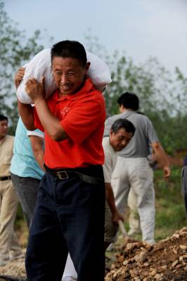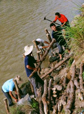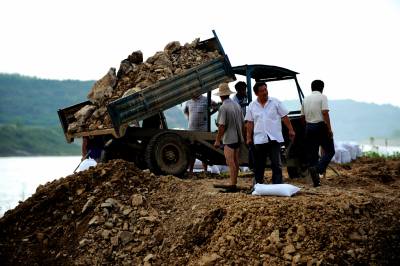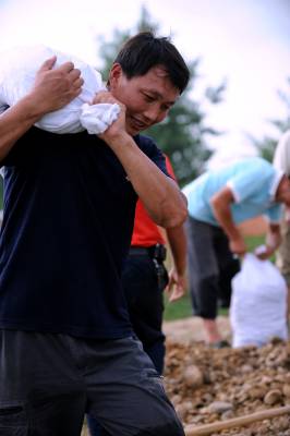 随州市曾都区遭遇特大暴雨袭击,干群奋力抗灾。近日来,随州市曾都区遭遇特大暴雨袭击,造成山洪暴发,河水猛涨,洪水泛滥成灾。大灾来临,曾都区广大干部群众奋力抗灾,力争把灾害损失降到最低限度。这是长江重要支流--府河堤防被洪水冲毁,干群奋力抢修。