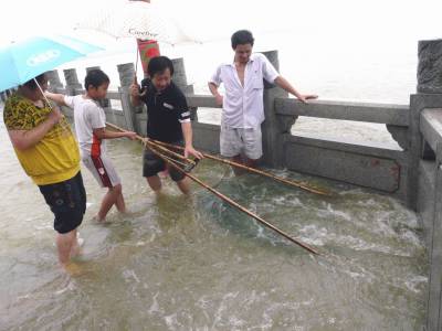 7月21日下午,长江汉江两江交汇处的武汉市江汉区"龙王庙"景点,己淹被两江夹击的洪水之中。当日晚19时,长江武汉关水位己达27.09米,离27.3米的警戒水位,仅差0.21米,汉江龙王庙水位已达27.17米。面对两江陡长的洪水,该市江汉辖区沿江各单位,在市区防讯指挥部的统一调令下,己做好了迎战大洪水的准备,有的闸口己封闸。