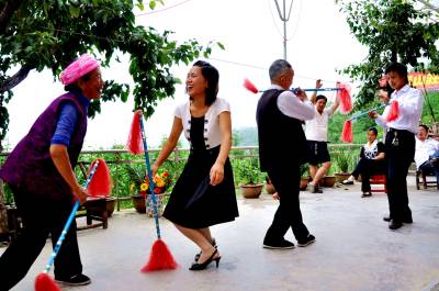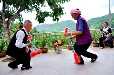 ”莲湘”舞动好健身7月21日,笔者在恩施市红土乡红土居委会看到,82岁的王协庭老俩口正在给孙子和周边群众传承打莲湘舞(图1),受到群众的欢迎。据了解,恩施市文化馆主要负责人深入到红土乡走访民间老艺人调研莲湘舞(图2)。一根莲湘在手中翻动,时左时右、时上时下,敲击肩、臂、胸、背、脚等部位,发出清脆的”嚓嚓”声……王协庭老俩口自编自导《歌唱共产党好》等文艺节目(图3)。莲湘这种艺术表演形式在民间流传有100多年的历史,民间艺人还为莲湘配上音乐和唱词,边打边唱,边唱边舞,既锻炼身体,又愉悦身心。打莲湘不仅仅是人们喜闻乐见的文艺形式,也成为当地一项以健身为主要目的的文体活动。采访手记:土家族是一个历史悠久、文化灿烂的民族,民间文体活动也异常丰富。民族民间文体活动是土家人在改造大自然和人类社会过程中创造提炼出来的文化瑰宝,既体现了民族的勤劳、勇敢、聪慧的内在个性,又是民族乐观浪漫情调的外在渲染。表演起来诙谐明快有趣,运动量大,全身筋骨都处在运动中。是具有很大价值的娱乐、健身项目。(视界网彭绍峰摄)红土乡政府13329820218