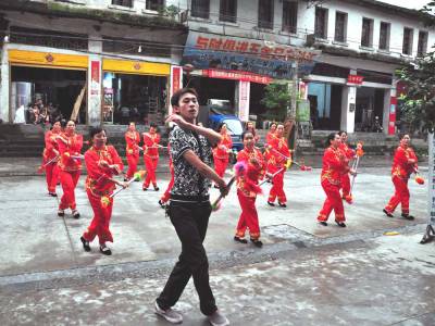 大学生义务辅导农民腰鼓队舞蹈