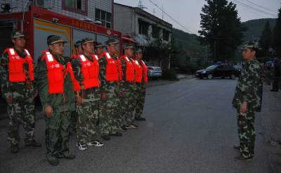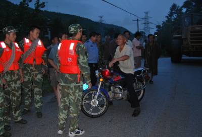 由于郧县突降大雨,导致境内水库水位超出警戒,特别是潭家湾镇的桐新水库,水溢出库堤,如不及时泄洪,可能导致决堤。一旦决堤,下游的潭家湾镇数千人将受到威胁。7月22日下午,经郧县县委、县政府召集专家研究后决定,将桐新水库堤坝炸开一个缺口,缓解水库的压力。当天下午19时10分许,郧县消防大队接到县委、县政府的紧急调度,潭家湾桐新水库炸堤泄洪,会造成泄洪河道暴涨,淹没部分公路和地势地洼处,请立即前往潭家湾镇疏散转移群众。接到命令后,郧县消防大队大队长唐彪率大队12名官兵立即前往潭家湾镇。19时30分,消防官兵赶到谭家湾镇,在向潭家湾镇政府相关人员了解有关情况。据了解,堤坝已炸开一个缺口,洪水即将来临,但来往的群众、车辆仍在路上行驶,一些群众还在洪水必经的地方围观。对此,大队长唐彪现场对官兵进行了分工,消防官兵随后立即分成四组,与当地镇政府工作人员和派出所民警一道,对洪水将会淹没的几处路段进行了封锁,及时将房屋在低洼处群众疏散到安全地带。20时许,消防官兵将一些经过此路段的车辆和行人拦截止在潭家湾镇上,现场决阻行人和车辆等洪水退下后再走,同时,靠泄洪河道两旁的数百名居民也被疏散到集镇,等待洪水通过。20时3分,洪水咆哮而过,由于人员、车辆被早早疏散到安全地带,洪水除将沿道山石树木冲倒外,没有造成其它损失。20时30分,洪水逐渐下降,险情解除,道路再次畅通,在此等候的400多名群众也相继回家。在潭家湾政府工作人员道谢声中,消防官兵收拾好器材装备撤离现场。