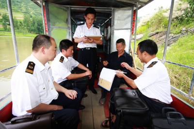 竹山县排查渡口码头,防止发生次生灾害7月23日,竹山县海事局工作人员在该县城关镇窑沟渡口检查客渡船。7月中旬,竹山县发生30年一遇特大暴雨,导致堵河水位急剧上涨。眼下正值退水期,但堵河水位仍处于洪水线警戒之上,为防止河岸崩塌和冒险行船带来的安全隐患,竹山县组成工作专班,逐一排查渡口码头,禁止所有客渡船、农用船、渔船离岸行驶,防止发生次生灾害。(本报视界网章磊摄)地址:竹山县交通局章磊电话:15972574118