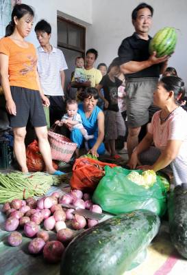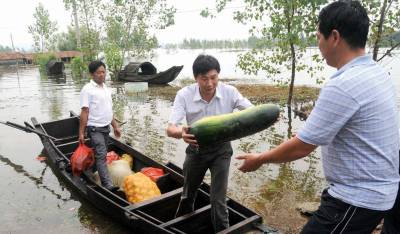 洪水中村干部划来生命之舟连日来的大量降水,使黄石市阳新县太泊湖漫堤溃口,竹溪洲村成孤岛阳新县氵韦源口镇竹溪洲村被洪水包围,成了一座孤岛。全村7000亩养殖湖泊被淹,3000米公路泡在水底,村民们损失惨重。 灾情发生后,该村村干部一边向上级汇报灾情,一边积极自救。为确保村民一日三餐有着落,村干部当起了”菜贩子”——到黄石蔬菜批发市场买菜,运回村里原价卖给村民。因为进出村的道路被水淹没,他们每次进货都要划船出行。为早点把新鲜蔬菜送到村民手中,他们凌晨3时就起床赶路。 洪水无情人有情,全镇干部群众也在灾难发生第一时间,向竹溪洲村民伸出援助之手,协助村民生产自救和灾后重建。图一:21日,村干部划来”生命之舟”。图二:.竹溪洲成为孤岛.。图三:拖拉机在水中。图四:干部在市场选菜。图五:村民在干部家中选菜.。图六:干部”生命之舟”划船送菜。图七:干部送菜上岸》黄石市黄石日报摄影部邱孝威摄
