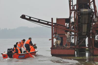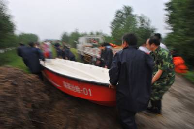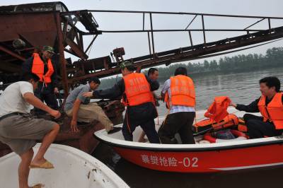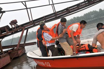 7月23日,湖北省三名在汉江上漂泊了一夜的农民获救。7月22日下午1时30分,丹江口水库开始泄洪,丹江口水库下泄流量由5000立方米/秒增至8000立方米/秒,老河口市三名去江中固定无动力的淘石船的农民,因钢丝绳断裂被困在船上任江水河流,襄樊市委闻讯后立即组织海事等部门进行搜寻,于7月23日8时25分将三位农民救上抢险船只。