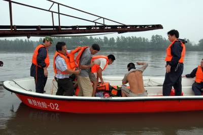 7月23日晚,丹江口水库泄洪洪水将一停舶在老河口与樊城区交界处汉江中的采石船冲往下游,3名看管该船的船工在救船无望的情况下,发出求救信息。襄樊市机动防汛抢险队接到抢险任务后,出动两艘冲锋舟,从随时可能倾覆的采石船上救出3名遇险人员。