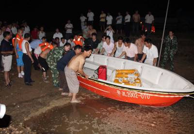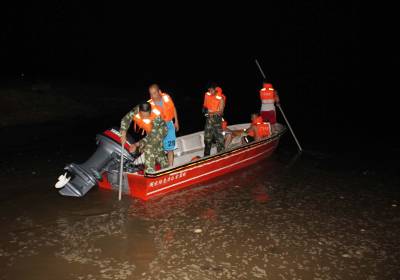 7月22日,广水市太平乡红旗村环河支流发生翻船事故,11名民工落水,孝昌王店镇政府及王店派出所民警,全力协作广水太平乡政府及警方全力搜寻4名失踪者。23日上午8点40分许,已在下游发现1名失踪者尸体。两地警民全力搜寻失踪者22日晚20时许,记者来到孝昌与王店接壤的王河大桥西边,见广水市太平乡政府工作人员、派出所民警及广水市消防大队官兵,载着冲锋舟来到桥附近的环河河滩,找到合适的位置后,在红旗村一名熟悉水情和地形的村干部的带领下,顺河寻找失踪者;而在环河下游1公里处的孝昌王店桥上游,孝昌王店镇政府及王店派出所民警,正由南往北沿河寻找失踪者。记者在离红旗街不远的太平河渡口看到,十几个村民仍站在渡口往河心眺望,河水十分湍急。一名正在哭泣的妇女告诉记者,她叫黄自清,今年55岁,是失踪者严群雄的二妈。下午17点40许,严群雄和另外1名船主渡其他9人过河,到河对岸的群益村去架设电线,不料在河心发生翻船事故,有7人自救上岸,船主严群雄和民工张树金、陈远秀、李松山4人失踪。9名民工和2名船主落水记者了解到,7月17日,广水市遭受了历史罕见暴雨袭击,造成严重洪涝灾害,突发特大洪水,冲毁了太平乡洪益村供电线路。7月22日,太平乡群益村组织民工帮助电力部门竖电线杆,抢修水毁高压线路。当天上午,民工从太平河红旗河坝不行通过;下午,河水上涨,坝面不能通行。9名民工从附近找来一只木船,请2名船主帮助渡河。行至河心,山洪陡涨,河坝被冲毁3米,浪头把船掀翻,7人自救上岸,4人失踪。相关部门领导赶到现场指挥搜救事故发生后,广水市”四大家”领导,太平乡党委、政府领导在第一时间赶至现场组织救援。太平河沿河两岸4和村紧急动员数百名群众连夜搜救,市公安局和太平乡派出所民警,迅速和下游孝昌王店政府及派出所取得联系后联合搜救,广水市消防大队派出冲锋舟赶至现场支援。7月23日早晨6点,该市人武部又紧急增派一艘冲锋舟投入艘救。23日上午11时许,记者在王河大桥西边看到,消防大队官兵正在换班搜寻失踪者;人武部领导和民兵驾驶冲锋舟从上游到下游来回搜寻,搜寻范围从太平乡王河大桥到孝昌县王店大桥。搜救工作仍在紧张进行中23日下午13时许,记者在孝昌县王店大桥头看到,失踪者李远秀的妹妹和儿媳等亲人站在河岸边,悲凄地对着河水呼喊着失踪亲人的名字。李远秀的儿媳李三泪流满面地说,上午8点40左右在王店河边张树金的尸体后,他就和姑妈赶到了这里,希望能尽快找到失踪的公爹。刚简单吃完午饭的广水市人武部领导和民兵,安慰了几句失踪者家属后,又开始了沿河搜寻。目前,人武部搜寻人员已经联系了会撒鱼网的渔民,在河段重点部位撒网打捞,搜救工作仍在紧张进行中。宋俊初摄