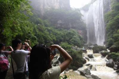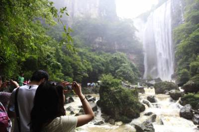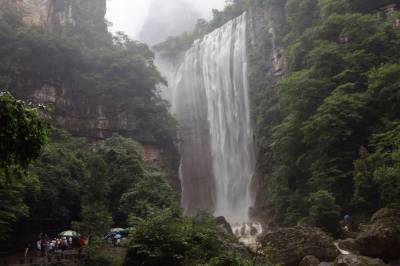 三峡大瀑布增宽5米7月21日,三峡晓峰景区内的白果树瀑布巍为壮观。连日的降雨使景区内的瀑布群全部显现,其中被誉为”华中第一瀑”的白果树瀑布更是增宽了近5米,给来到这里的游客留下深刻印象。本报视界网黄翔摄