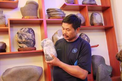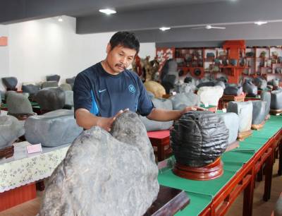 张宗坤”玩”石成金7月23日,堵河坤元奇石馆馆长张宗坤正在馆内欣赏他收藏的奇石(如图)。堵河源于鄂西北神农架,顺大巴山穿巫山、绕武当山,百折干转汇入汉江,首尾落差近千米。经考证,堵河历史上曾经历过三次海浸和数次火山爆发。经过上百年剧烈不停的冲刷,撞击,洗磨,逐渐形成了质地坚硬,造型生动,线条流畅,图纹美丽,色彩斑斓的天然奇石.得天独厚的自然条件,也造就了堵河石迷人的风韵。从小生长在堵河岸边的张宗坤对石头情有独钟,并”玩”石成瘾,为带动石农石友致富,抢救性保护堵河奇石,打造堵河奇石文化,展示堵河奇石魅力,张宗坤独资投入100多万元,在竹山县城创办首家品种最多、规模最大、藏品最丰富的奇石展览馆。目前,馆内两万多奇石藏品免费为奇石爱好者开放。(操春林)竹山县林业局邮编:442200电话:13997822006