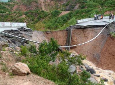 图文:强降雨致交通中断22日下午,郧县安阳境内突降暴雨,山洪爆发,省道丹郧路K104+550处,路基路面冲毁长50米,高10米,宽9米,造成交通中断。当地交通部门已组织工程技术人员现场进行勘测,制定了公路抢通和客运车辆通行方案,目前正在组织抢通,确保尽快恢复通行。(本报视界网徐雁初摄)